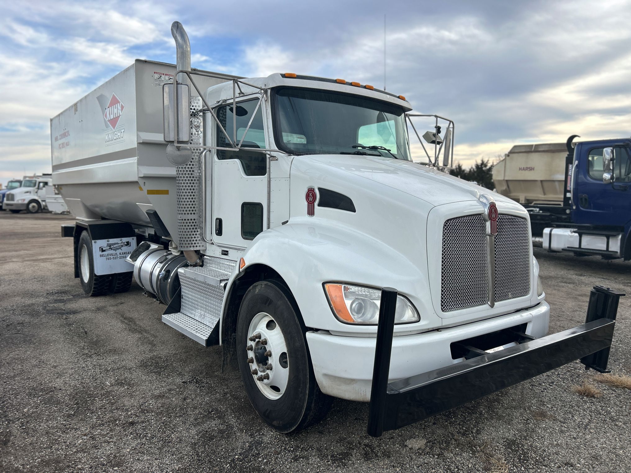 2012 White Kenworth T370 w/Kuhn Knight RC260 Helix Mixer, Pacaar PX8 Engine, 260 HP, 3500RDS Transmission, Diesel, 1-50 gal. Fuel Tank, Upright Exhaust, Spring Suspension, Pilot Wheels w/11R22.5 Tires, 33,000 GVWR, Single Axle w/10,ooo Front & 23,000 Rear, 138CA, Day Cab, Power Steering, Red Dot A/C, 2 Bucket Seats, 6.67/9.08 Rear End Ratio, Full Stainless Steel Liner, New Bottom Auger, Engine Hours: 11,753, Mileage: 87,823, VIN: 2NKHHN7X5CM323543.