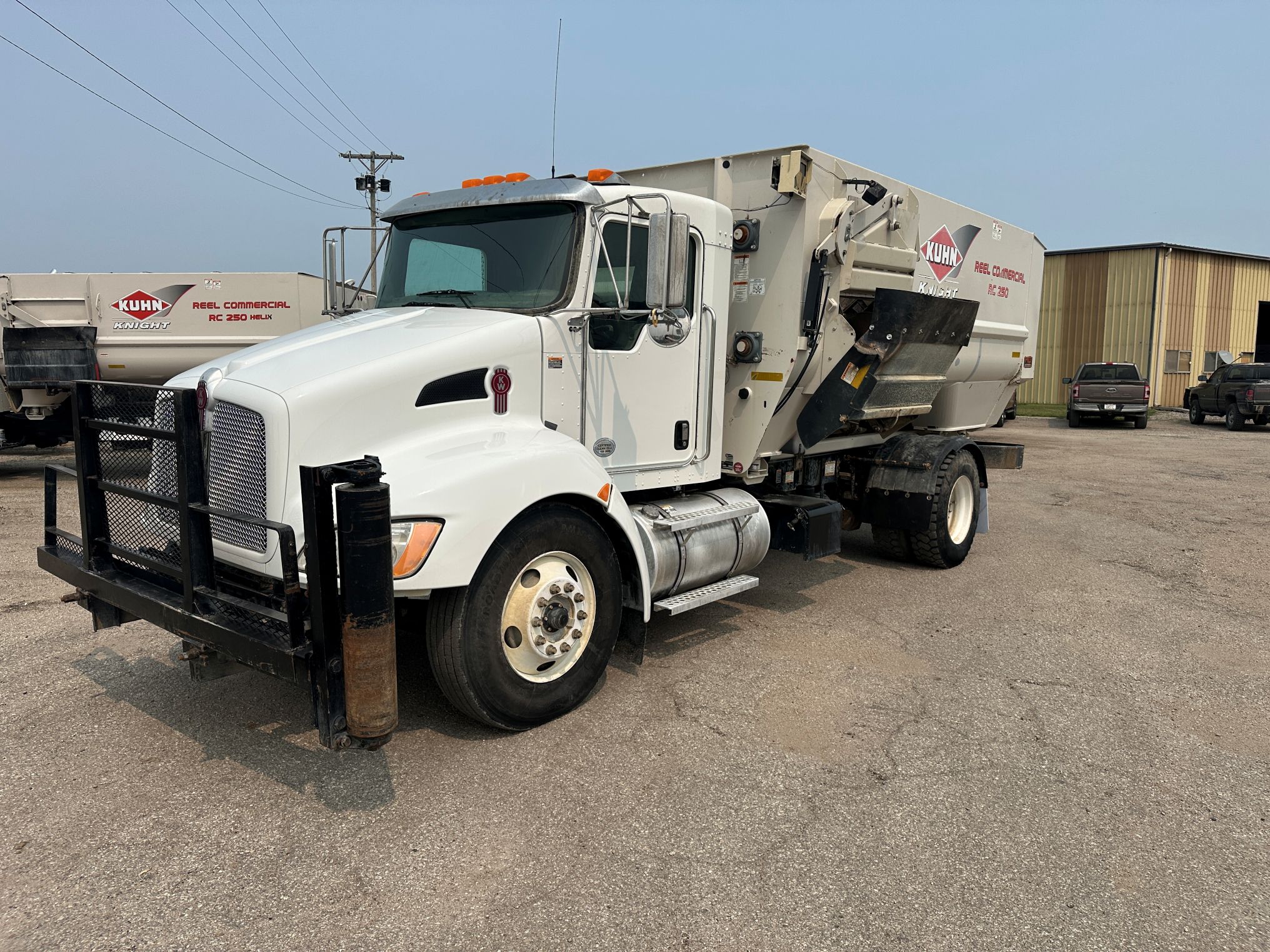 2011 White Kenworth T370 w/Kuhn Knight RC250, Paccar PX9 Engine, 300 HP, Allison 3000 Transmission, Diesel, 1-50 gal. Fuel Tank, Spring Suspension, Pilot Wheels w/11R22.5 Tires, 33,000 GVWR, Single Axle w/10,000 Front & 12,000 Rear, 124CA, Power Steering, Red Dot A/C, Air Seat, Straight Bar, Engine Hours: 11,501, Mileage: 57,428.